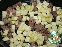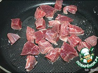 Нарезанную кусочками говядину обжарить на сковородке. |