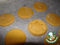 Половину кружочков выкладываем на противень. В половине вырезаем отверстие (С помощью формочки или рюмочки меньшей формы). |