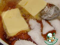 Снимаем с огня, всыпаем сахар и добавляем масло. |