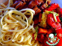 Описание: "Утиная грудка, в ее нежно-розовом варианте, под соусом из айвы, к ней феттуччини и овощное рагу". Меню дорогого ресторана? Вполне. Только у меня было ровно 35 минут до начала любимой телевизионной передачи, а ужин не отменялся!