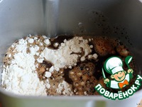 Согласно инструкции к хлебопечи выложить все ингредиенты в ведерко. |