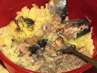 Размять рыбку вилкой, добавить толчёную в пюре картошку, перемешать |