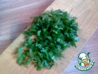 Зелень (петрушку и укроп) нарезать и добавить в смесь. |