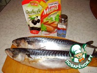 Сырые тушки скумбрии помыть, выпотрошить, натереть солью внутри и снаружи и смесью из майонеза и горчицы - также внутри и снаружи |