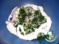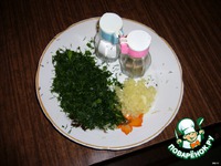 Зелень и чеснок измельчить (чеснок можно пропустить через чеснокадавилку, что я и сделала). |