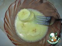 Каждый кружочек банана обмакнуть во взбитый желток с двух сторон. |
