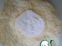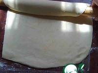 Достать тесто из холодильника. Разделить на две части. Одну часть раскатать и выложить с помощью скалки на противень. Вилкой сделать в нескольких местах проколы, чтобы при выпечке оно не поднялось. |