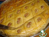 Тесто разделить на 12-15 шариков. Большую чугунную сковороду смазать маслом (печь можно и на противне, но я предпочитаю чугунную сковородку). По одному тонко раскатываем тесто. Первый слой должен быть немного толще остальных. Аккуратно выложить на сковороду, смазать растопленным маслом и посыпать начинкой. И так далее, по одному раскатывать и выкладывать слои. Каждый смазывать маслом и посыпать начинкой. |