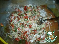 Теперь все мешаем: помидоры, зелень, чеснок, лук, хлеб замоченный, орегано, специи и муки столько, чтобы все это можно было лепить (примерно 3 стол. л.) |