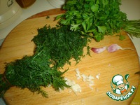 Продолжаем делать помидорные оладьи. Режем мелко зелень и чеснок (сразу и на кабачковые оладьи). |