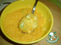А теперь в моей излюбленной панировке из кукурузных хлопьев, за которую я очень и бесконечно благодарна Наталье-XSENIA, мы обваливаем наши оладьи. |