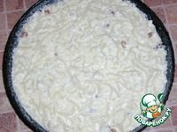 Добавила яйца и сахар, можно ванильки и изюмчика. Опять-таки смотрите, чтобы яйца хорошенько обволокли все ингредиенты, то бишь, было не очень сухо. Перемешать. |