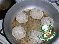 Сформировать котлетки. Обжарить с 2-х сторон на сковороде. Я жарю так: сначала на одной стороне, потом переворачиваю, уменьшаю чуть огонь и накрываю крышкой. Получается, что они сразу пропариваются. |