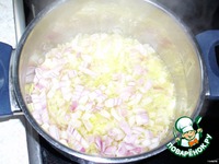 добавляем мелко нарезанный лук репчатый через минуту зелёный лук корень а можно и сам фенхель |