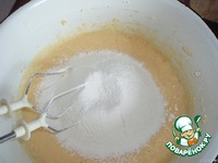Муку просеять с разрыхлителем и смешать с яичной массой. |