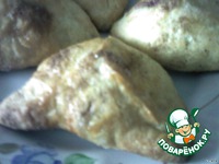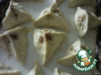 Защипываем края треугольником.обмазываем яйцом и обсыпаем сверху корицей. |