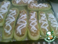 1.Помыть кабачки,отрезать края. 1.1.Разрезать вдоль и ложкой чайной убрать серединку.(сделать лодочки таким образом.) 1.2.Внутренность кабачка которую мы вынул, обжариваем на сковороде. |