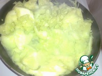 4.Фарш,мякоть кабачка,лук,высыпаем в кастрюльку. Все перемешиваем. |