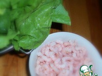 Промываем салат и достаем из холодильника подготовленные креветки.