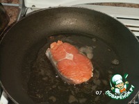 На оливковом масле слегка обжариваем с 2-х сторон семгу |