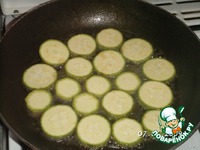 Убрали на тарелку обжаренную рыбку, затем режим кабачок немного солим, и так же на сковородочку, обжариваем до золотистой корочки. |