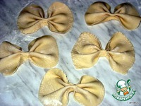 Описание: Не всегда при замесе теста на пельмени, вареники или манты, оно уходит без остатка. Кое-кто прячет в морозильник этот кусочек, а кто-то просто выбрасывает. Я всегда делаю бантики. Такие вот.
