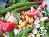 Описание: Салат с фасолью, сладким перцем, зеленой фасолью и кукурузой по своим питательным качествам вполне заменит вам основное блюдо, особенно в жаркую погоду.
