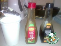 2.В сковороду кладем сметану,соевый соус,чеснок, соус чили. |