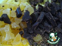 Лимон очистить, мякоть нарезать кусочками и тоже добавить в тесто вместе с ромом; хорошо перемешать. |