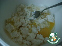 Смешать творог с яйцами, маслом в однородную массу, постепенно добавляя муку, замесить тесто и положить в холодильник. |