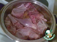 1.Кролика,разрезаем на куски. 1.1 Замачиваем на пару часов,добавляем 2 ст.ложки уксуса. 1.2 Меняем воду 2 раза. |