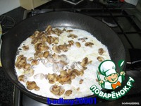 В сковороду кладем грибы, жарим до готовности, и добавляем сливки, тушим 5-7 минут. |