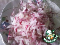 смешала сердце, яйца, редис, майонез . Добавила пучок нарезанного укропа |