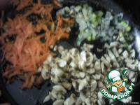 готовим начинку: нарезала лук, натерла морковь, и половину грибов нарезала на кусочки. пережарила на подсолнечном масле |