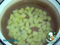 Затем вилкой ломаем кусочки рыбы и отправляем в кастрюлю к картофелю. |