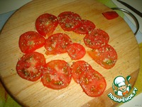 Достанем наш пирог,уложим сверху помидоры,посыпаем оставшимся сыром,и снова поставим в духовку еще на 15мин. |
