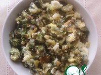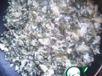 Добавить яйца, посолить по вкусу. Хорошенько мешать,чтоб яйца равномерно распределились с лучковыми стрелками и прожарились. |