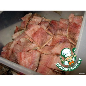 Итак... все предельно просто... Рыбу очищаем от костей и внутренностей... головы отрезаем. Тщательно промываем... высушиваем бумажным полотенцем. Режем на небольшие кусочки... |