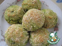 Описание: Воздушные крокеты из молодого горошка с сыром и чесноком, запанированные в сухарях с кунжутными семечками - прекрасная горячая закуска или гарнир.