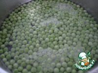 Молодой очищенный горошек отварить в кипящей подсоленной воде 12 мин. с момента закипания. |