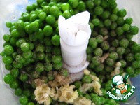 Воду слить; горошек измельчить в миксере или блендере с добавлением чеснока и молотого перца, |