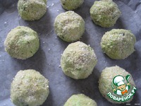Из горохово-творожной массы сформировать шарики и запанировать; выложить на противень, покрытый бумагой для запекания, |