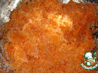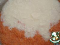 Должна получится смесь - густоватая сметана. Если густая разводится простоквашей, жидкая - добавляется мука. Это зависит от сочности моркови. |