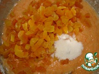 Добавляем ванильный сахар и порезанную кусочками курагу, перемешиваем. |