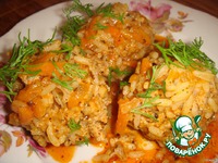 Из мяса, лука (1 головка), чеснока сделать фарш. В фарш добавить рис. |