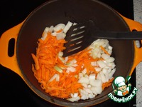 Когда поджарка подзолотится в неё добавить лавровый лист, томатную пасту, базилик. |