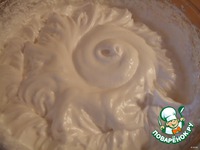 Теперь яичные белки взбили в пену и тоненькой струйкой всыпаем сахар и продолжаем взбивать до крепкой пены (масса не должна вываливаться из миски) |