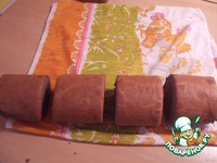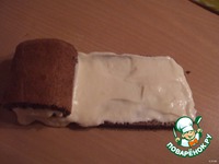 Теперь аккуратненько размотаем брусочек, смажем нашим кремом и неплотно сворачиваем. Разворачиваем следующий брусок - промазываем и наматываем на первый, начиная с конца предыдущего. И так до конца. |