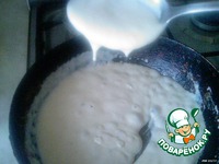 Добавляем полукруги кабачка и тушим ещё 1 минуту. Ложкой достаём кабачки и бекон, а на сковороду ложем оставшееся сливочное масло. Когда оно растопится, смешиваем муку и молоко, добавляем в масло. |