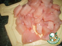 Режем куриное филе на средние кусочки, солим, оставляем минут на 15-20. |